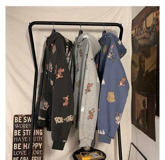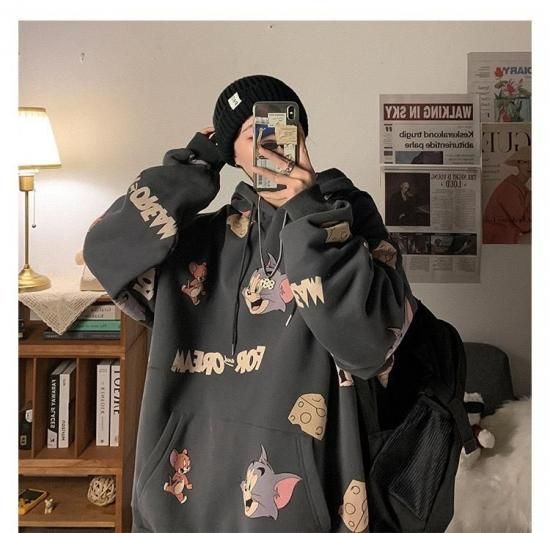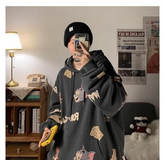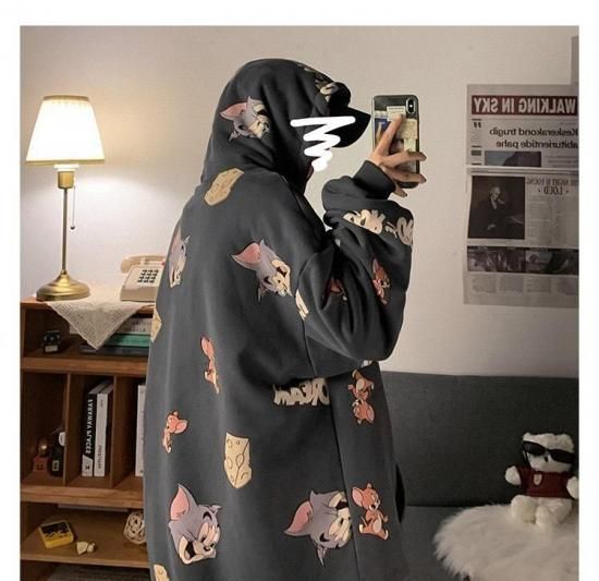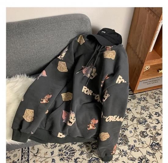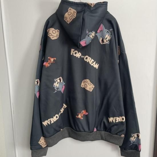 ホーム > トップス > トムとジェリー フード パーカー 総柄グラフィック チャコールグレー
